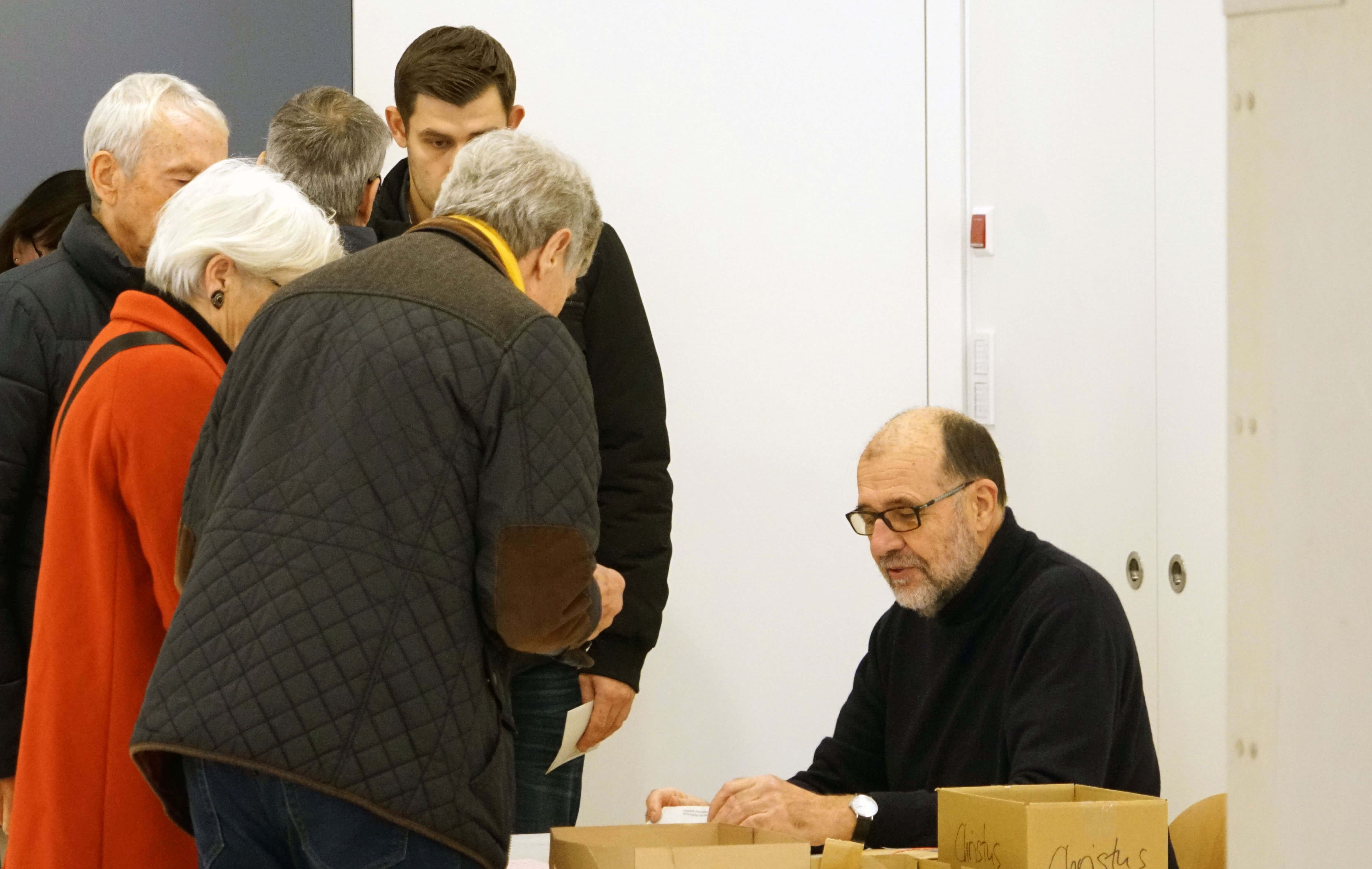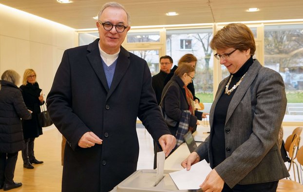 Landesbischof Dr. h. c. Frank Otfried July und seine Frau Edeltraud wählten am späten Vormittag im Gemeinedehaus der Stuttgarter Christuskirchengemeinde - sie waren nicht die ersten: Kurz nach 11 Uhr betrat als erste Wählerin eine junge Frau das Wahllokal, um ihre bereits zuhause ausgefüllten Stimmzettel in die Urne zu werfen.