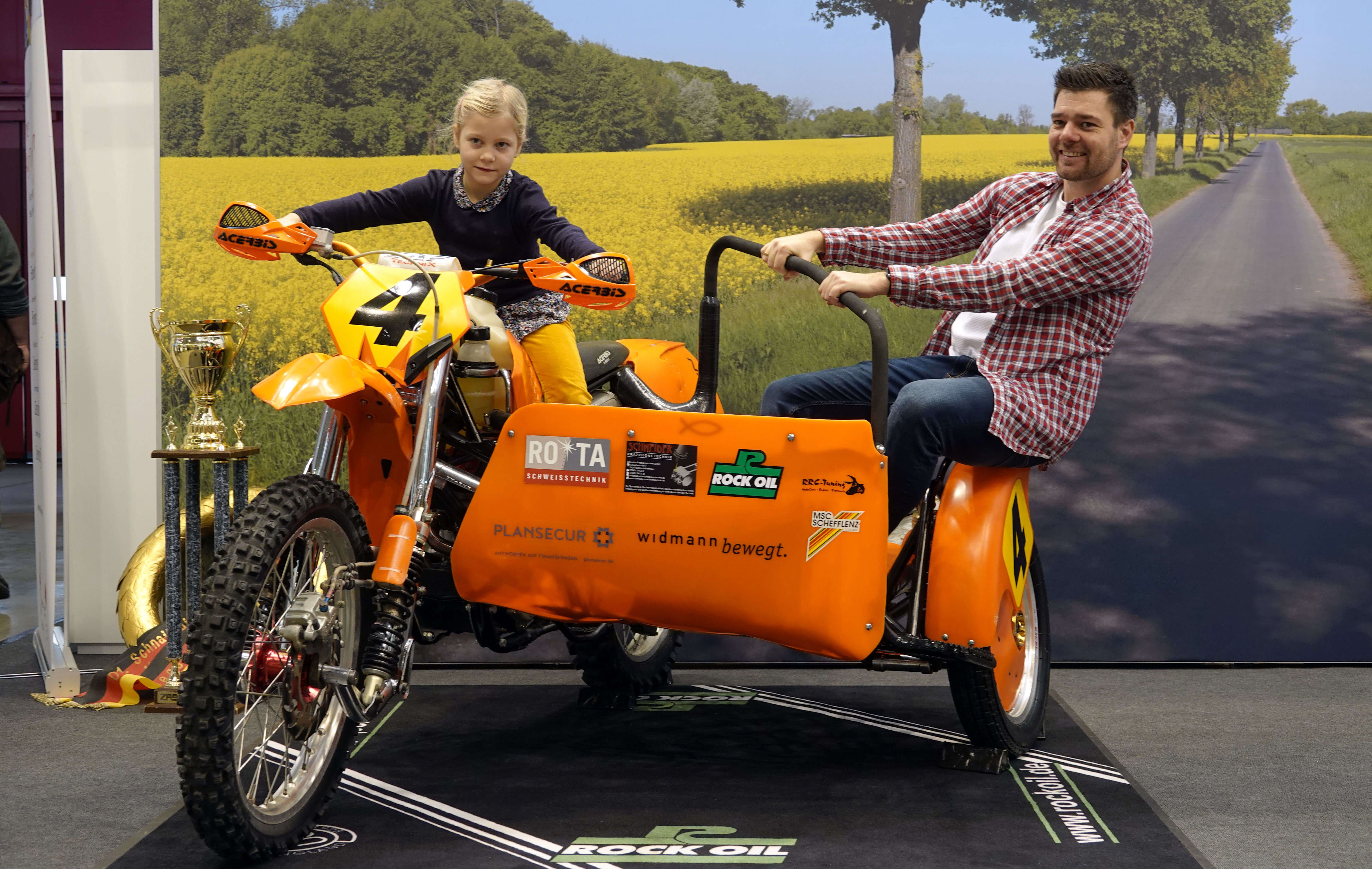 Wer will, kann das Erfolgsgespann besteigen, sich vor einer Frühlingskulisse fotografieren lassen - und die Aufnahme gleich im Anschluss mit nach Hause nehmen. „Das hat uns super gefallen“, schwärmt Daniel Zimmermann aus Bad Saulgau, nachdem er sich mit seiner Tochter Liara den Spaß gegönnt hatte - sie als Pilotin auf der Maschine, er als Beifahrer im Seitenwagen.
