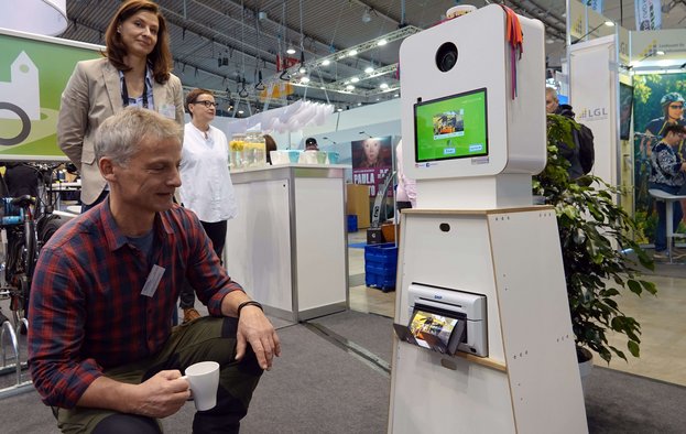 „Diese Aktion ist der Eisbrecher“, sagt Katja Boch von der Erzdiözese Freiburg mit einem zufriedenen Lächeln. Gemeinsam mit ihrer Kollegin Ulrike Spießl kümmert sie sich um die kirchliche Fotoaktion, die oft nicht einfach mit der Übergabe eines Bildes endet: Wer will, kann sich die Aufnahme auch per Mail zuschicken lassen, erhält zudem ein Armbändchen mit einem Segensspruch - und kommt mit den Standbetreuern schnell ins Gespräch.
