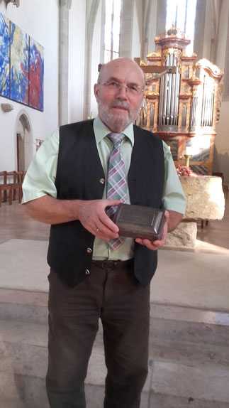 Der Mesner Reinhold Bauer hat am Montag, 20 Mai, die Brenz-Medaille in Silber für seine Verdienste um den Evangelischen Mesnerbund Württemberg erhalten. Landesbischof Dr. h. c. Frank Otfried July übergab die Medaille beim 70. Landesmesnertag in Nürtingen.