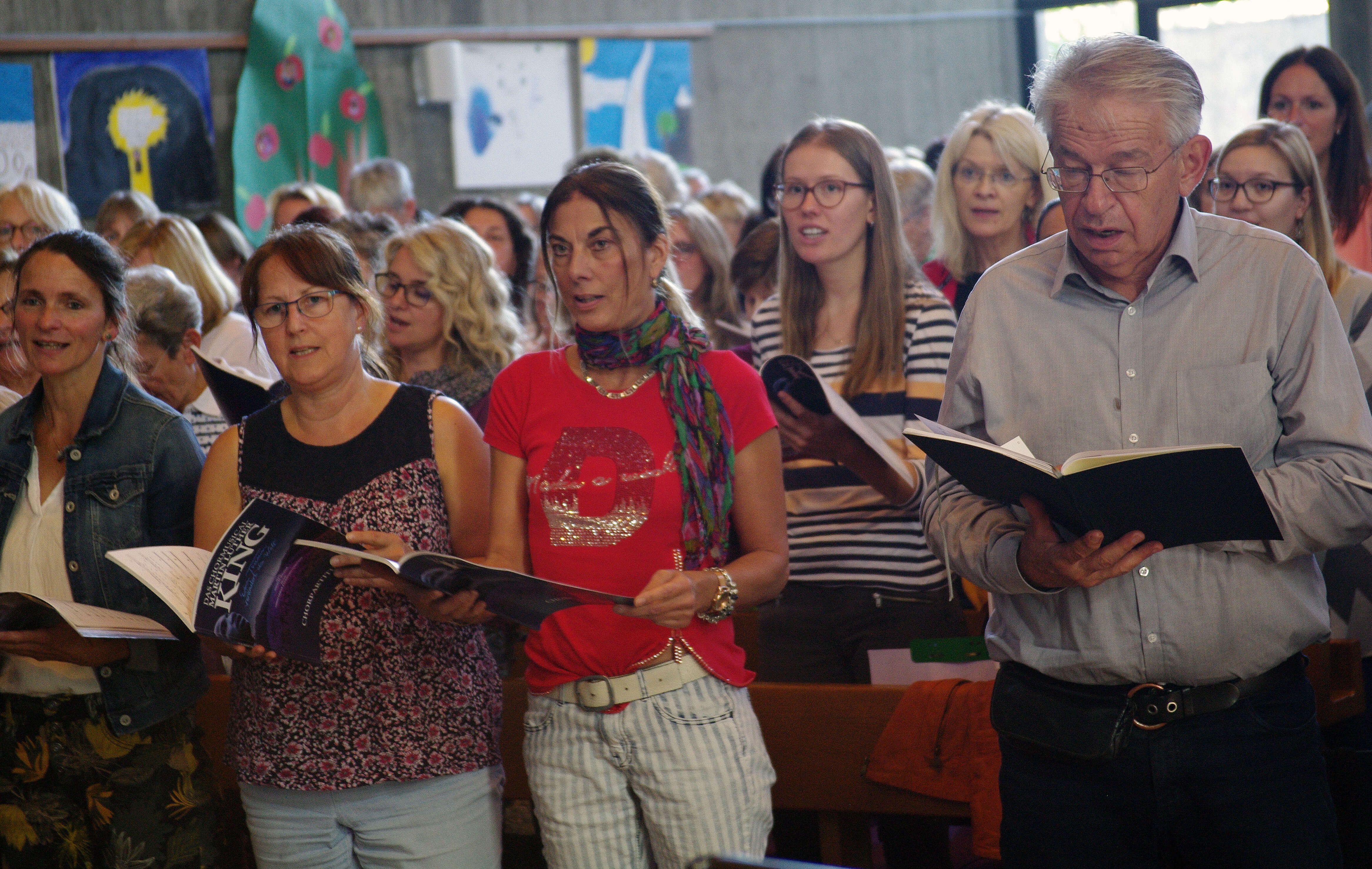 Aber es ist eben nicht irgendein Kirchenchor, der die musikalische Begleitung des sonntäglichen Gottesdienstes übt und sich an einem sauberen „Halleluja“ versucht. Nein, in der Bonhoeffer-Kirche in Stuttgart-Fasanenhof findet gerade die erste Regionalprobe für das Chormusical „Martin Luther King“ statt, das zwei jeweils 800 Sängerinnen und Sänger starke Chöre am 25. und 26. Januar 2020 in der MHP Arena Ludwigsburg aufführen werden.