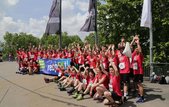 Das Team war sogar größer als von den Organisatoren zunächst erwartet: Waren wenige Tage vor dem Großereignis 84 Teilnehmer gemeldet, streiften sich am Sonntag insgesamt 87 Hobbysportler die roten EJW-Shirts über; in diesem Jahr machten sie mit ihrer Aufschrift „Meine Kirche. Eine gute Wahl“ gleichzeitig Werbung für die Teilnahme an den Kirchenwahlen am 1. Dezember.
