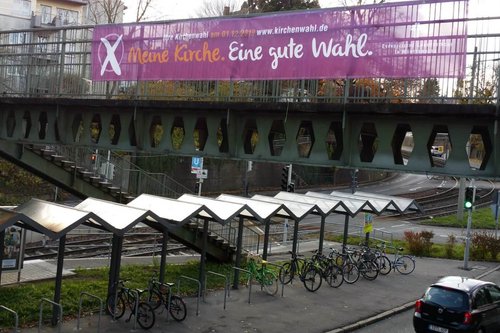 Autofahrer mit Ziel Stuttgart können es kaum noch übersehen: Am 1. Dezember ist Kirchenwahl. Seit Montag hängen acht große Banner über den Haupt-Einfallstraßen der Landeshauptstadt.