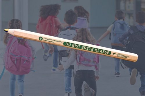 Die württembergische Landeskirche und die Diözese Rottenburg-Stuttgart haben 2025 zur Einschulung 30.000 Buntstifte mit der Aufschrift „Du bist erste Klasse“ an Erstklässler und Erstklässlerinnen verschenkt.