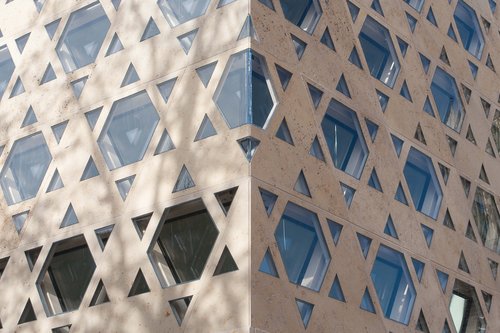 Das Jerusalemfenster der Ulmer Synagoge. 2017 war die Synagogen-Fassade durch Tritte beschädigt worden.