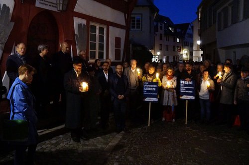 Rund 150 Frauen und Männer haben sich am Donnerstagabend vor der Esslinger Synagoge versammelt: „Nein zu Antisemitismus und Judenhass“ lautete ihre Antwort auf den Anschlag eines jungen Rechtsextremisten in Halle mit zwei Toten und mehreren Verletzten.