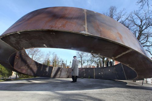 Gedenkstaette der Opfer des Amoklaufs von Winnenden mit dem Titel „Der gebrochene Ring“ von dem Künstler Martin Schoeneich in Winnenden bei Stuttgart.