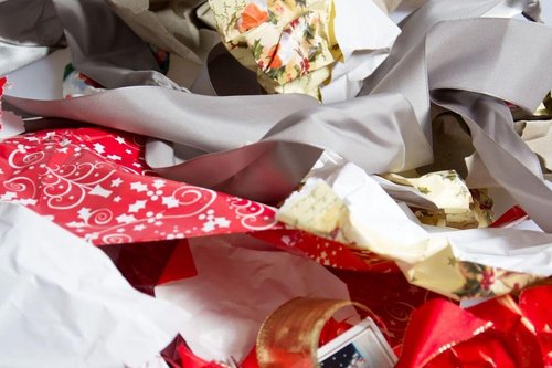 Schöne Bescherung! Nach dem Auspacken der Geschenke türmt sich der Papiermüll unter dem Weihnachtsbaum.