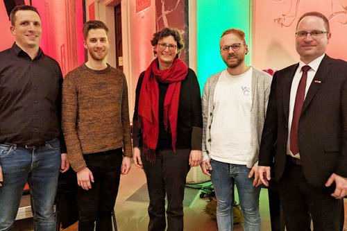 Von links: Urs Bicheler (Landes-Popkantor), Johannes Lorenz, Carmen Andruschkewitsch, Benjamin Steinhoff, Pfarrer Cornelius Kuttler (Leiter des EJW)