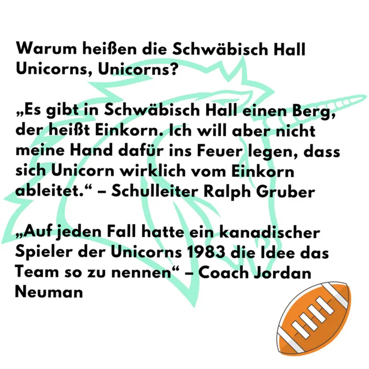 Diesen Sonntag, 4. Februar, ist Superbowl. Über eine Million Deutsche werden nachts aufbleiben, um ihr Team anzufeuern. Fast jeder amerikanische Junge träumt davon eines Tages Profi-Football-Spieler zu werden. Für 20 deutsche Jugendliche rückt dieser Traum in greifbare Nähe. In der Unicorns Academy im Evangelischen Schulzentrum in Michelbach (ESZM) formen die Schwäbisch Hall Unicorns, deutscher Meister im American Football, ihren Nachwuchs.
