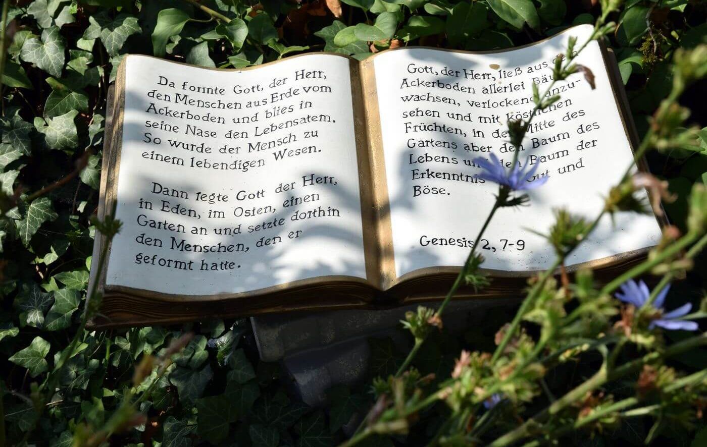 Für alle Interessierten hat Christa Hahn so manche kuriose Geschichte parat. Etwa das kleine Apfelbäumchen: „Der Apfel kommt fünf Mal in der Bibel vor, aber nicht da, wo man es vermutet“, erklärt sie. „Bei Adam und Eva ist immer nur von einer ‚Frucht‘ die Rede.“ Oder die Geschichte vom brennenden Dornbusch. Im Mai und Juni treibt der Strauch, der normalerweise in der Wüste gedeiht, violette Blüten, die stark duften. Bei Temperaturen über 40 Grad steigen die ätherischen Öle hoch, entflammen sich und brennen kurz ab. Der Busch selbst bleibt heil. Diese und andere Geschichten stehen neben den entsprechenden Bibelstellen auf den Tafeln, die sie überall aufgestellt hat.