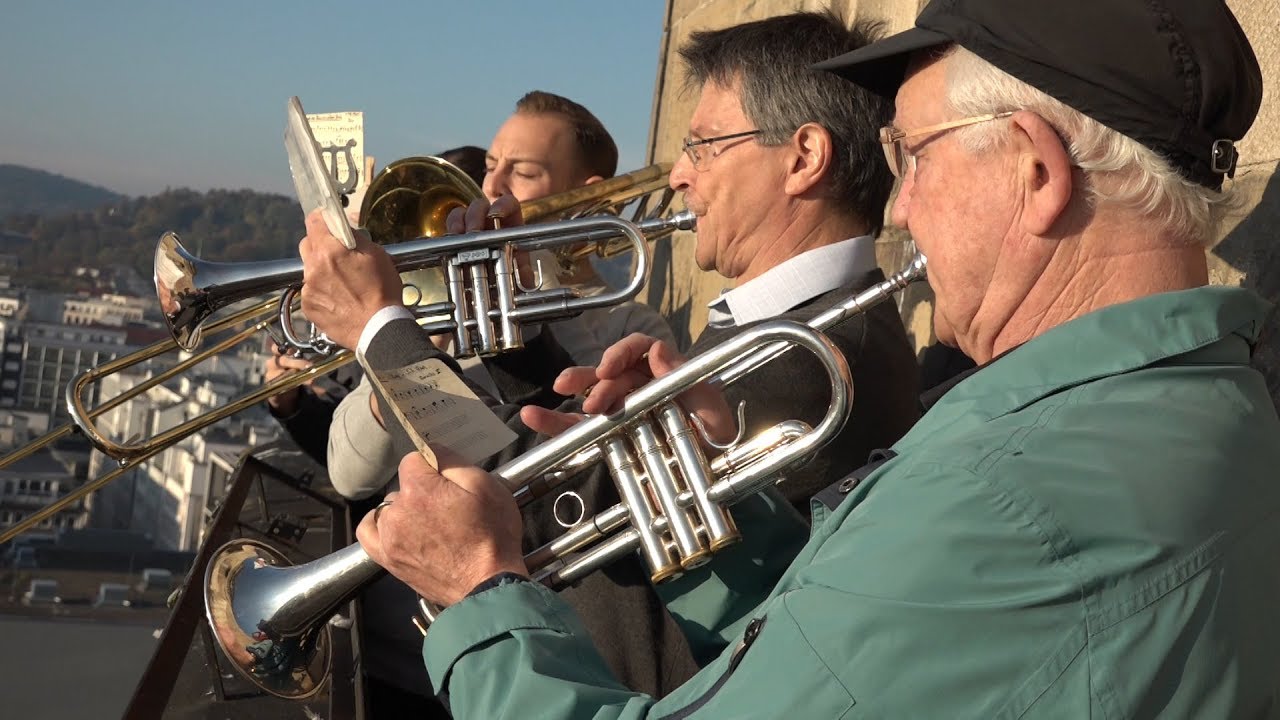 Es ist eine der ältesten Traditionen in Stuttgart, wenn nicht gar die älteste: Das Turmblasen von der Stuttgarter Stiftskirche. Bereits seit 400 Jahren, also seit 1618, klettern die Turmbläser die 232 Stufen des Westturms hinauf, um von dort oben ihre Musik über der Skyline der Landeshauptstadt erklingen zu lassen.