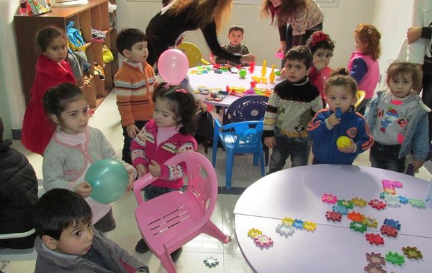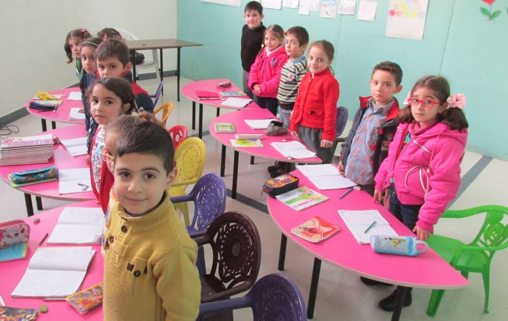 In die Vorschule gehen vor allem Flüchtlingskinder aus sehr armen Familien. Ihre Mütter würden es nicht schaffen, ihnen eine warme Mahlzeit am Tag zu verschaffen. Die Kinder werden morgens mit zwei Schulbussen aus den Dörfern im „Tal der Christen“ abgeholt und zur Schule gebracht. Die Kinder spielen viel, basteln oder bauen Sachen, wie das auch bei uns im Kindergarten der Fall wäre. Die Größeren lernen auch schon etwas Englisch. Außerdem bekommen sie ein zweites Frühstück, ein warmes Mittagessen und nachmittags noch einen kleinen Imbiss. Am späteren Nachmittag kommen dann die Busse und bringen die Kinder wieder in ihre Dörfer.