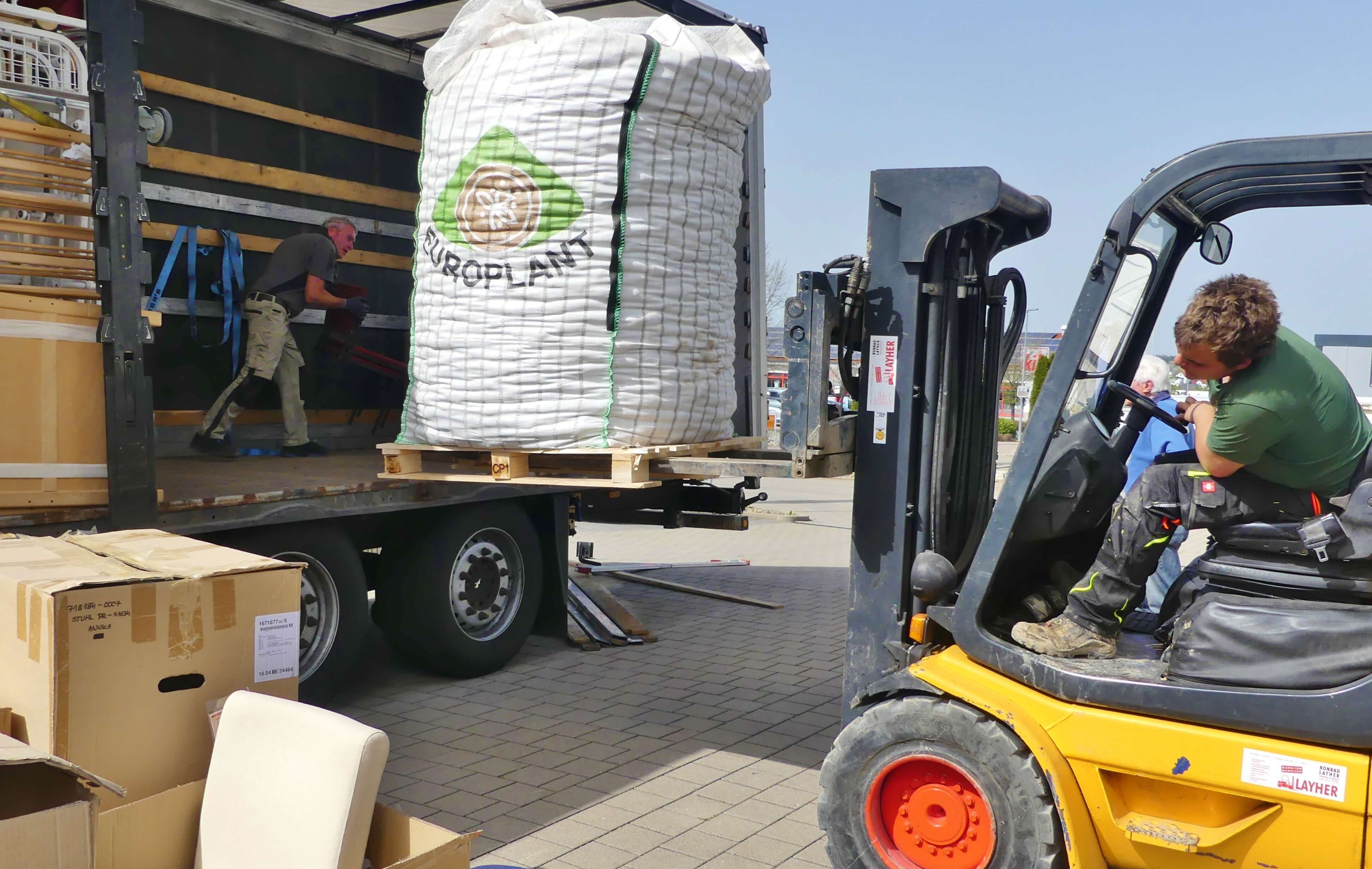 Geschafft: Der große Lkw ist beladen. Jetzt kann der Fahrer die Ladung in die Ukraine fahren.