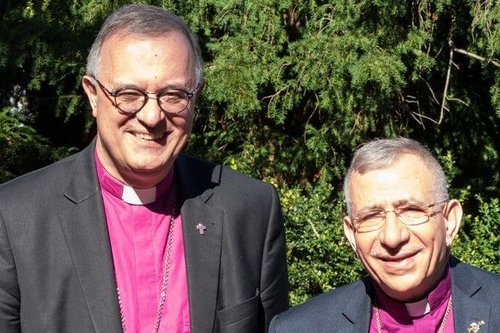Bischof Munib Younan, Präsident des Lutherischen Weltbundes und Bischof der evangelisch-lutherischen Kirche in Jordanien und im Heiligen Land, zu Besuch bei Landesbischof July.