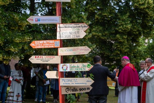 Die badische Landesbischöfin Springhart und der Freiburger Erzbischof weihten am Weltflüchtlingstag in Karlsruhe den Wegweiser „Miteinander unterwegs“ ein. Dieser zeigt Geflüchteten an, welche Initiativen sich in der Flüchtlingsarbeit engagieren und Unterstützung anbieten.
