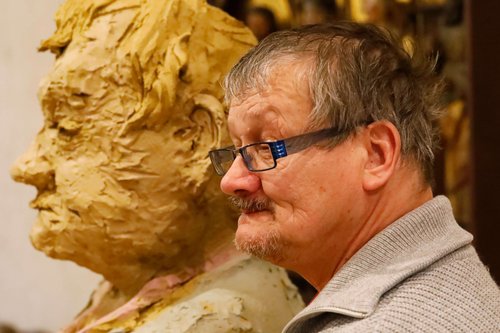 Franz-Josef Schneider und sein Double. Auch der Berliner Künstler, Harald Birck, scheint zufrieden.