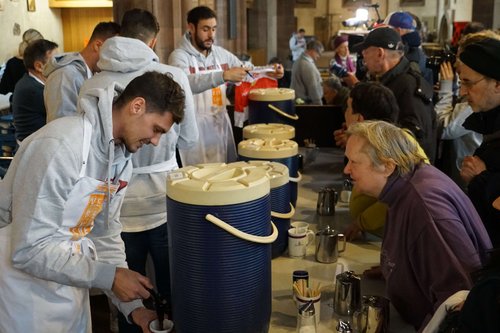 Fußballprofis mal ganz nah sein: Für viele Besucher der Vesperkirche Stuttgart war der Mittwochmittag der Höhepunkt der siebenwöchigen Saison in der Leonhardskirche. Vier Spieler des VfB sowie Vorstandschef Thomas Hitzlsperger, Sportdirektor Sven Mislintat und Clubpräsident Claus Vogt gehörten für knapp zwei Stunden zum Helferteam.