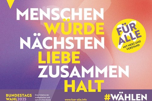Die Landeskirche schließt sich im Vorfeld der Bundestagswahl der Kampagne „Für alle. Mit Herz und Verstand“ an. Im Mittelpunkt stehen die Werte Menschenwürde, Nächstenliebe und Zusammenhalt. Auf der Kampagnen-Website stehen vielfältige Materialien zur Nutzung zur Verfügung.