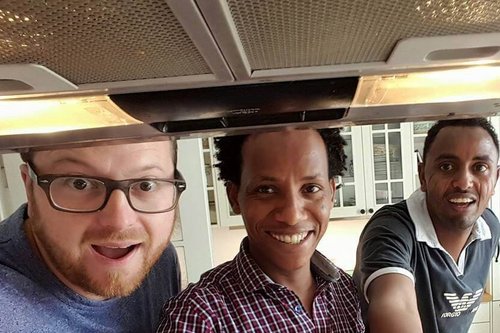 Tobi Wörner, Ghere und Jimie beim "Küchenselfie" (vlnr).