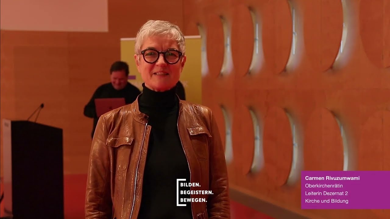 Zum Auftakt des Tages begrüßt Oberkirchenrätin Carmen Rivuzumwami, Leiterin Dezernat 2, Kirche und Bildung im Oberkirchenrat, die Teilnehmenden; es folgen Grußworte von Landesbischof Ernst-Wilhelm Gohl und Staatssekretär Volker Schebesta.