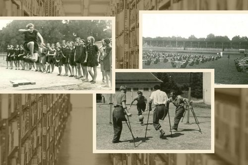 Bilder aus dem Archivbestand. Oben: Jugendturntag des Evangelischen Töchterinstituts in Stuttgart 1928. Unten: Versehrtenheim Isny im Allgäu aus den Jahren 1948/49