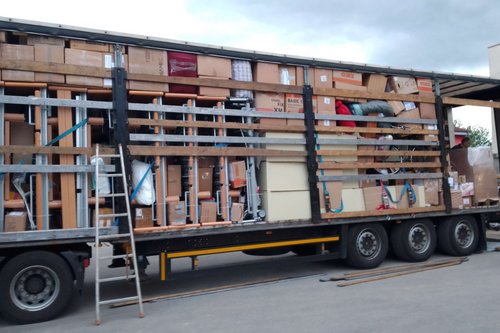 Die Beladung eines Transports bedarf genauer Planung und vieler Helfer.