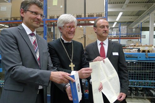 Andruck der neuen Lutherbibel am 16. Juni 2016 in Nördlingen mit dem Ratsvorsitzenden der EKD, Heinrich Bedford-Strohm