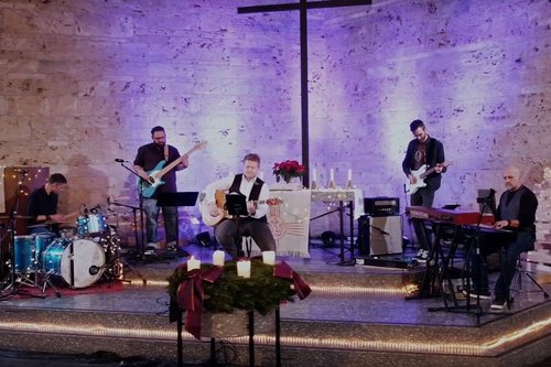 Der Sänger Patrick Bopp (FÜENF) wird musikalisch unterstützt von Landeskirchenmusikdirektor Matthias Hanke, der Weihnachtssingen-Band, dem Blechbläser-Ensemble EJUS Brass unter Leitung von Christof Schmidt, Christian Langer und David Hanke (Hanke Brothers) an der Blockflöte.