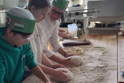 83 Brote haben die Konfirmandinnen und Konfirmanden der Evangelischen Kirchengemeinde in Aichwald zusammen mit Oberkirchenrätin Dr. Annette Noller in Aichwald bei der Aktion „5.000 Brote - Konfis backen Brot für die Welt“ in Württemberg gebacken und gegen Spenden abgegeben.