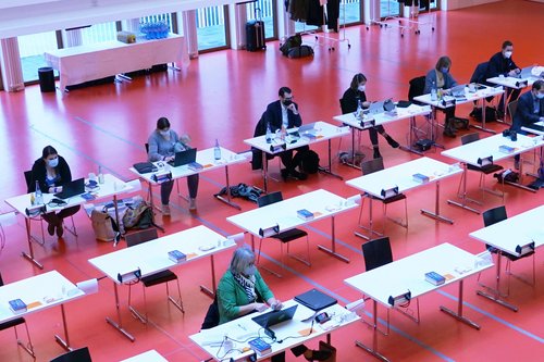 Nur wenige Synodale nehmen an der hybriden Herbsttagung der Landessynode vor Ort im Stuttgarter Hospitalhof Teil.