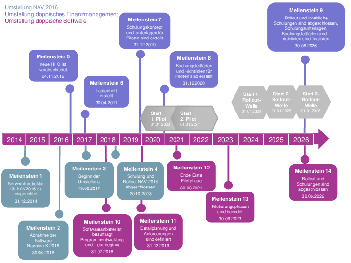 Diese sind je zum 01.01. in den Jahren 2020 bis 2026 geplant. Rechtzeitig vor den Umstellungen werden Schulungen für die Anwendenden geplant und durchgeführt.
