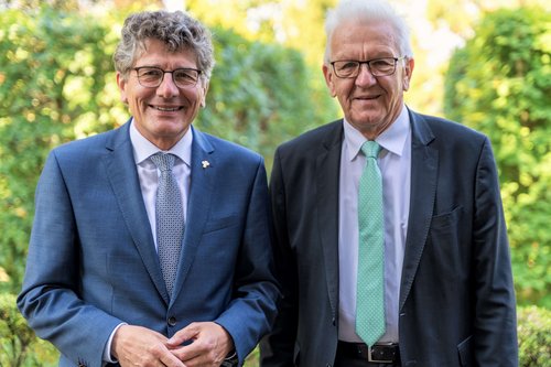 Landesbischof Ernst-Wilhelm Gohl traf sich am Donnerstag, 28. Juli 2022, mit Ministerpräsident Winfried Kretschmann zum Antrittsbesuch. Besprochen wurde u. a. die Bedeutung eines guten ökumenischen Handelns der Kirchen in Baden-Württemberg.