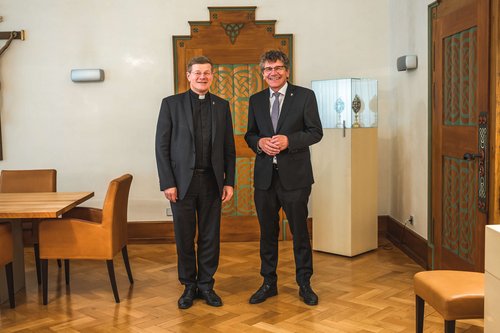Landesbischof Ernst-Wilhelm Gohl ist zu einem Antrittsbesuch bei Erzbischof Stephan Burger (re.) nach Freiburg gereist.