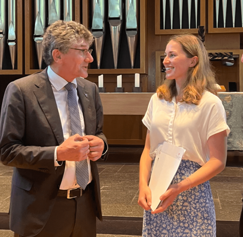 Landesbischof Gohl hat Clara von Freymann für Ihre Masterarbeit an der Ev. Hochschule in Ludwigsburg ausgezeichnet. Sie trägt den Titel „Fundraising in kirchennahen Organisationen. Eine Analyse der Verwendung von Kirchenbezügen in Spendenmailings kirchennaher Organisationen“.